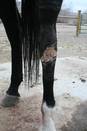 Frank, this famous Northwest endurance horse, told M to give me some peppermints from him. M went out and bought me a whole bucket of candy canes, but I didn't like them. So, instead, from Frank, I get a carrot (dipped in molasses) after every re-bandaging session.